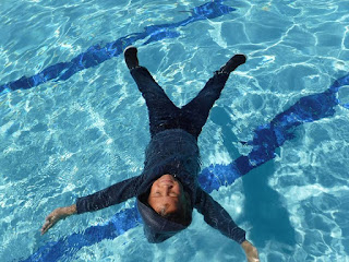 The last day they wear jeans, socks, shoes, a sweater, etc. so they can practice reacting with the extra weight of wet clothing should they unexpectedly fall in. And their instructor would flip them so they could practice reacting if they fell in head first, face first. backwards, etc.